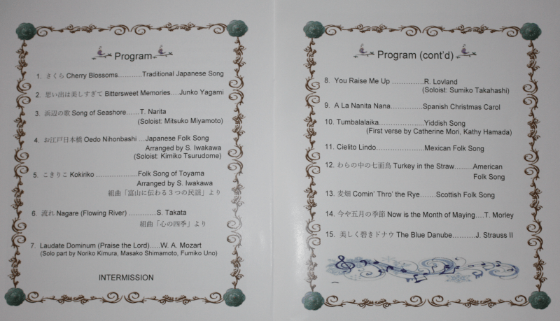 歌はそれぞれ個人の人生思い出を呼び起こしてくれます。 さくらコーラスでは、明るく楽しい豊かな心を、歌をとおして次の世代へ伝えたいと願っています。